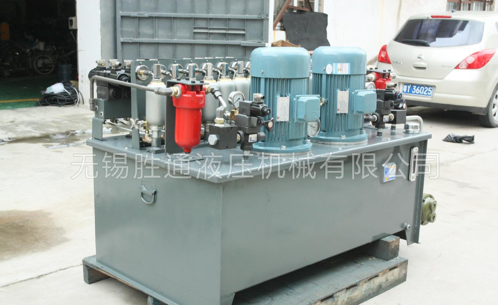 液壓站是由液壓泵、驅(qū)動用電動機、油箱、方向閥、節(jié)流閥、溢流閥等構(gòu)成的液壓源裝置或包括控制閥在內(nèi)的液壓裝置。按驅(qū)動裝置要求的流向、壓力和流量供油,適用于驅(qū)動裝置與液壓站分離的各種機械上,將液壓站與驅(qū)動裝置(油缸或馬達)用油管相連,液壓系統(tǒng)即可實現(xiàn)各種規(guī)定的動作。